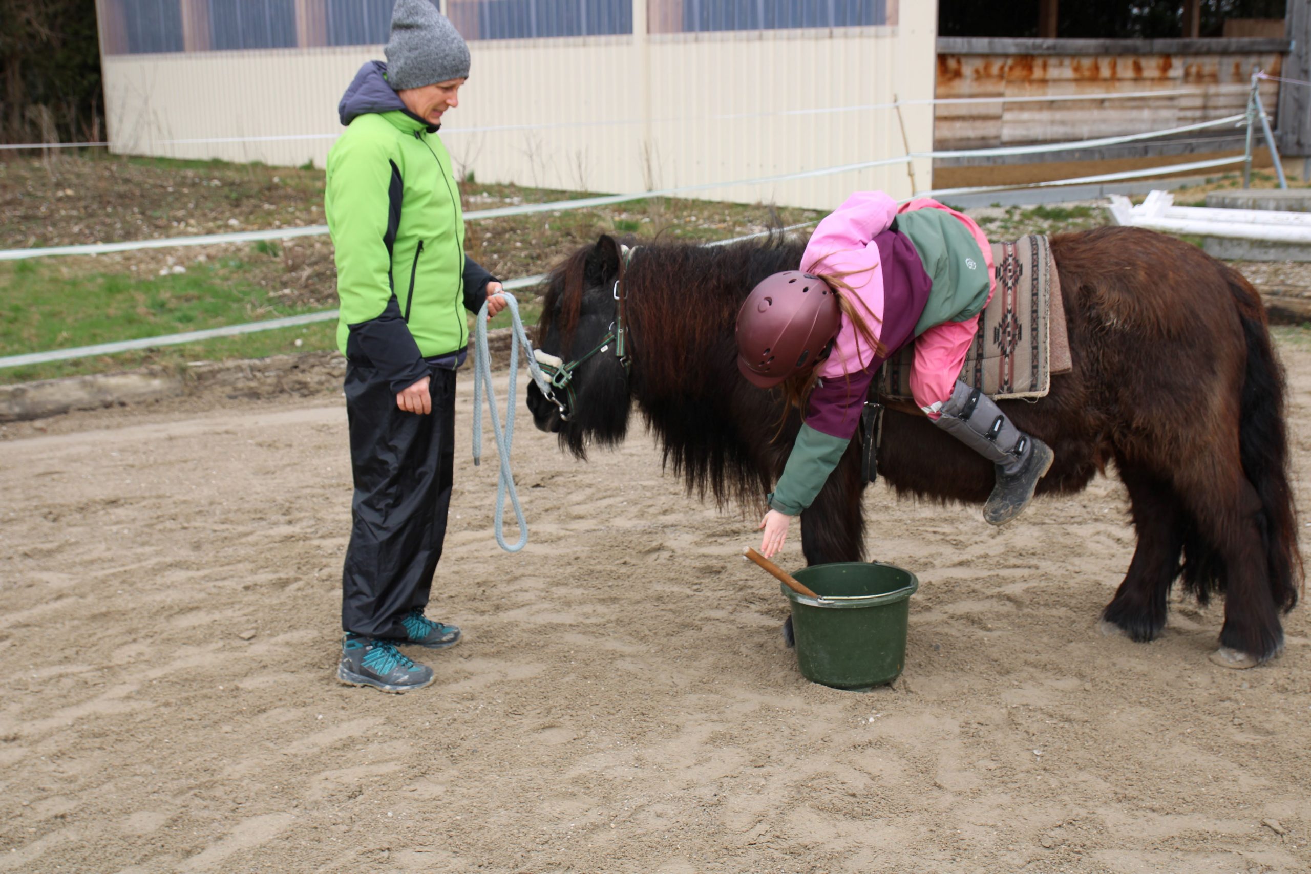Allein die Reise mit dem Großraumtaxi ist für die meisten Kinder ein spannendes Erlebnis. Dort angekommen, werden sie herzlich von der Leiterin Manuela empfangen. Der Kontakt mit den sensiblen Pferden steht im Mittelpunkt des Ausflugs. Sich kümmern, achten und reagieren auf das Gegenüber. Die Kinder dürfen unter gezielter und liebevoller Anleitung die Ponys striegeln, putzen, Hufe säubern, Heu ausmisten, füttern, das volle Programm.